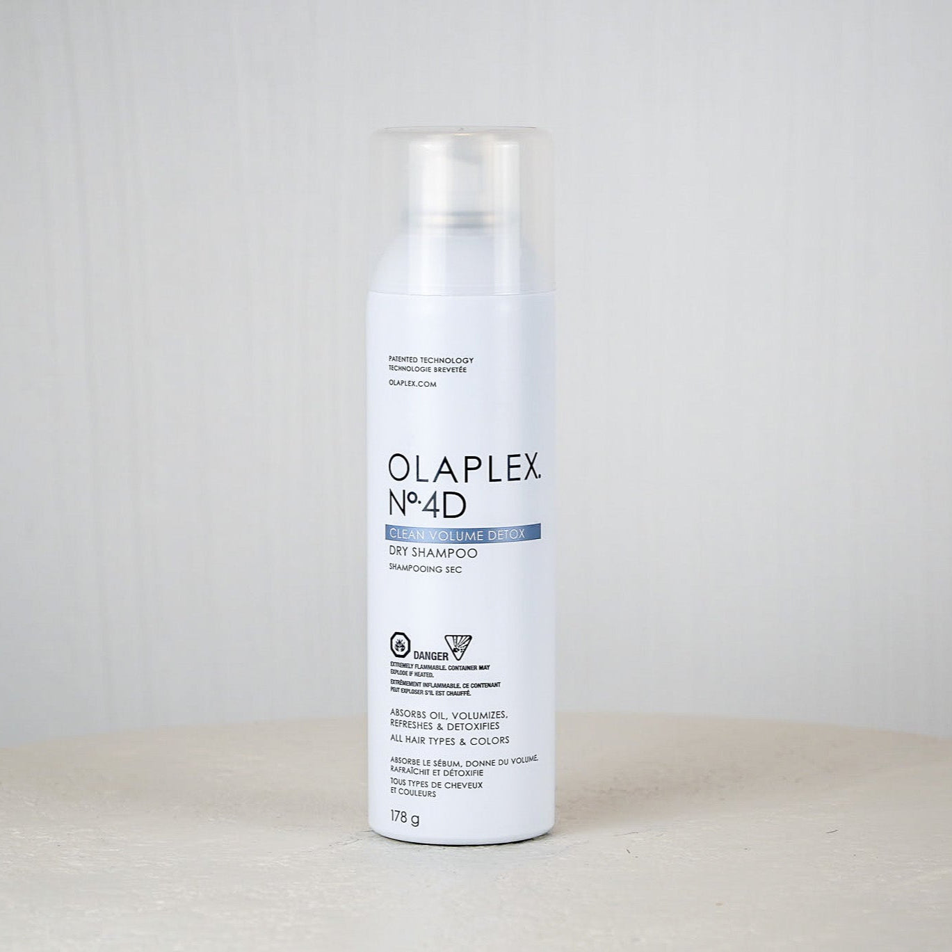 • Olaplex No.4D hair treatment can on a white surface with a light gray background